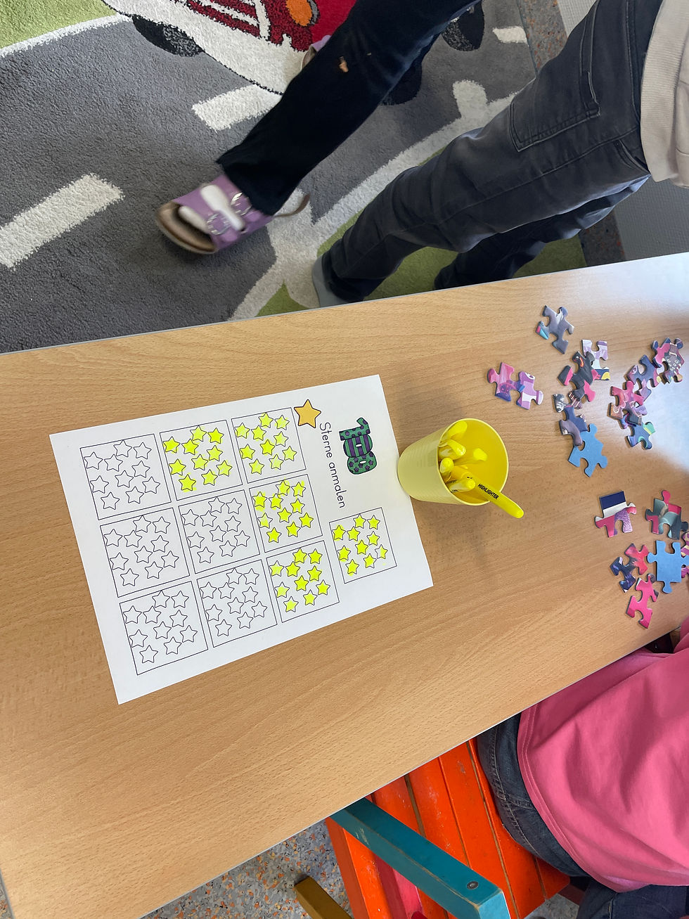 Am 16.2.2026 fand der 100. Schultag statt. Dieser wurde natürlich gefeiert. Wir haben 100 Wörter geschrieben, 100 Rechnungen gerechnet, 100 Fingerabdrücke gestempelt, 100 Perlen aufgefädelt, Muffins gegessen und noch viele andere Sachen 100 mal gemacht.